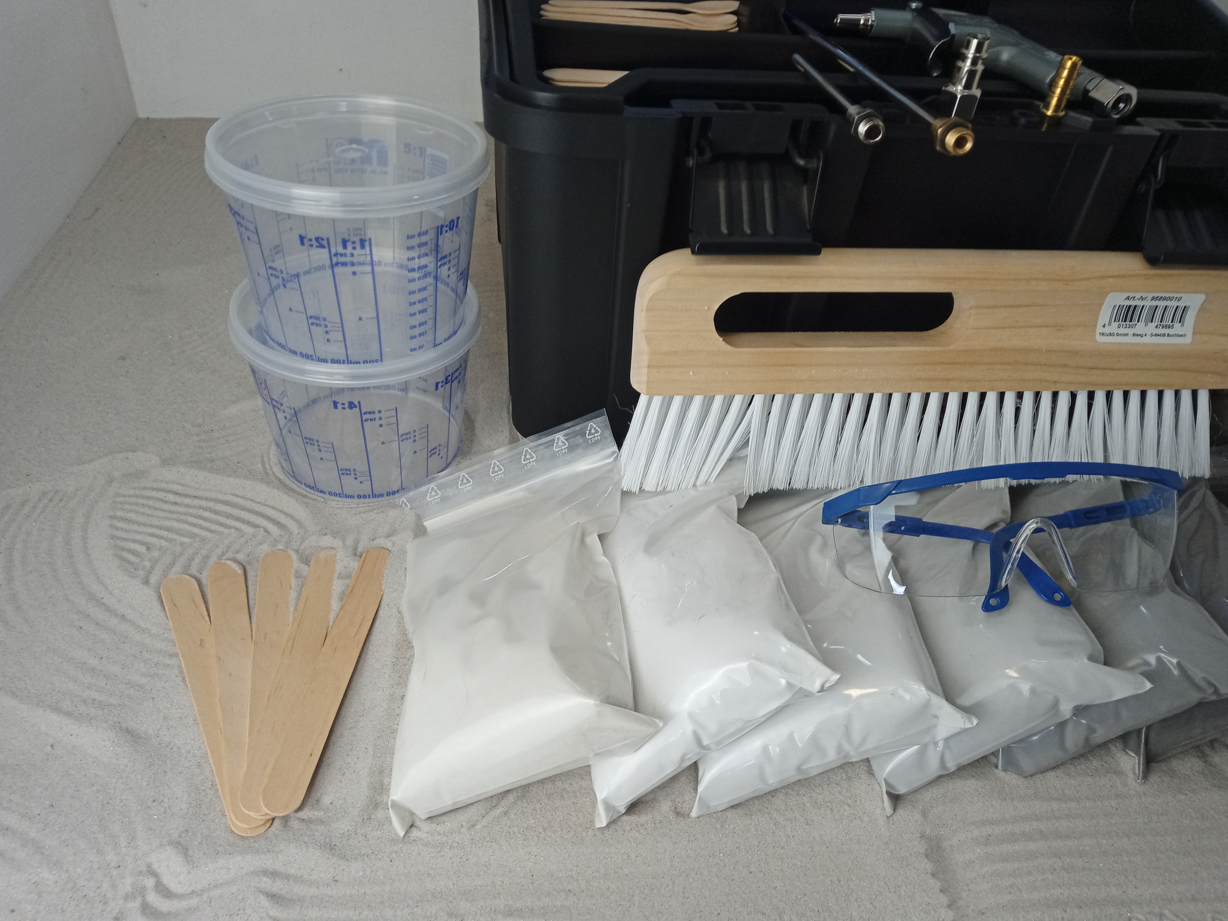 Set B. Profi Komplettset besandete Fugen im Koffer.